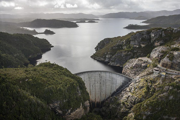 The towering Gordon Dam and its power station in Tasmania’s south west were officially opened in 1978, and together with Lake Pedder, form the largest water storage in Australia. The power station has a generating capacity of 450 megawatts or about a fifth of our total generating capacity.