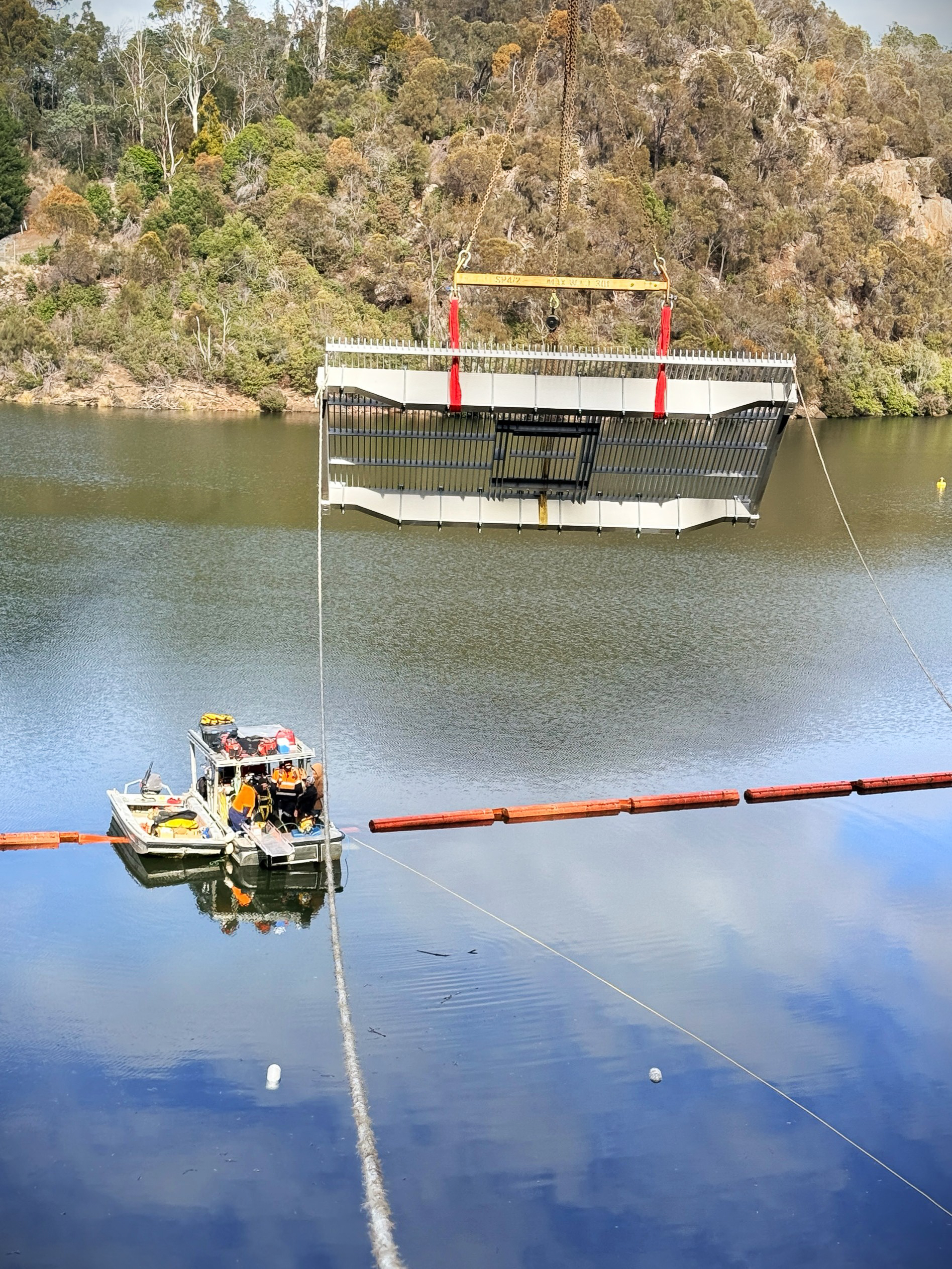A specialist diving team from Tasmanian Divers Group have installed the new frame, with Billings Cranes carried out the lifting operations, lowering the frame down to the divers who carefully install it underwater.