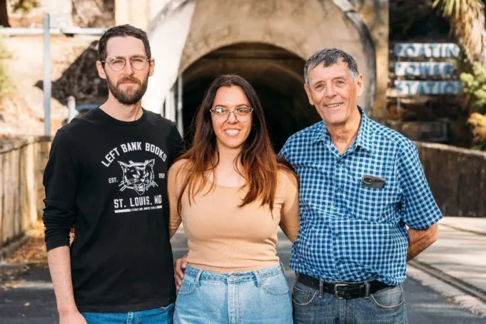 “Hydro kid” now 72-year-old Perth man Ian Dalby, his engineer son Mitchell and daughter Emily recently arrived in Tasmania to tour Poatina, on a family pilgrimage to honour the achievements of their late father and grandfather Kevin Dalby who was an engineer for the excavation of Poatina Power Station.