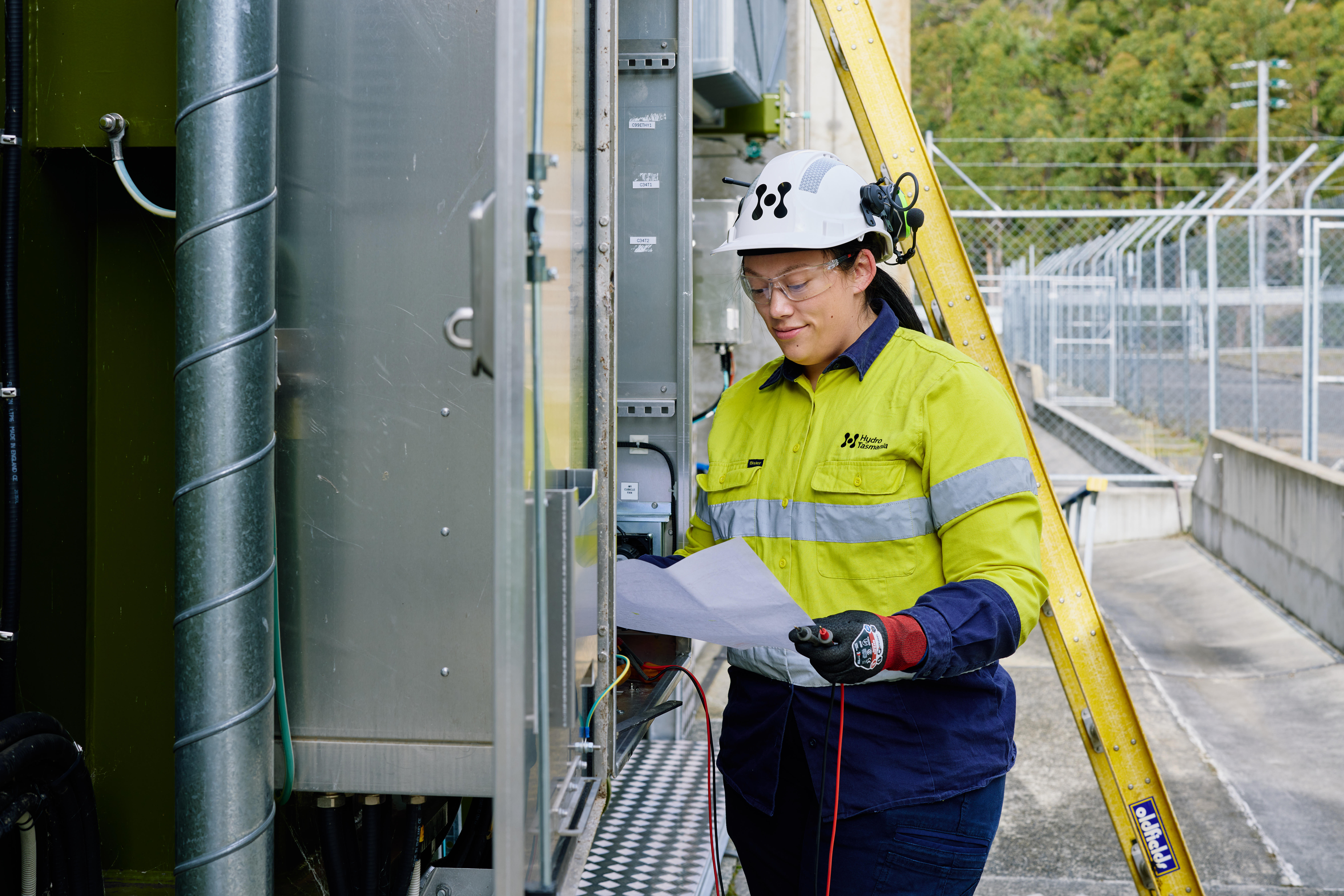 When Katrina joined Hydro Tasmania as part of the apprenticeship program, she was 19 and stepping into her first full-time job. She tells us that although it was a bit intimidating at first, being in a traditionally blue-collar, male-dominated space, she has built strong relationships across the teams. “During our induction in Hobart, there were four electrical apprentices—three of us were female—which was great to see.”