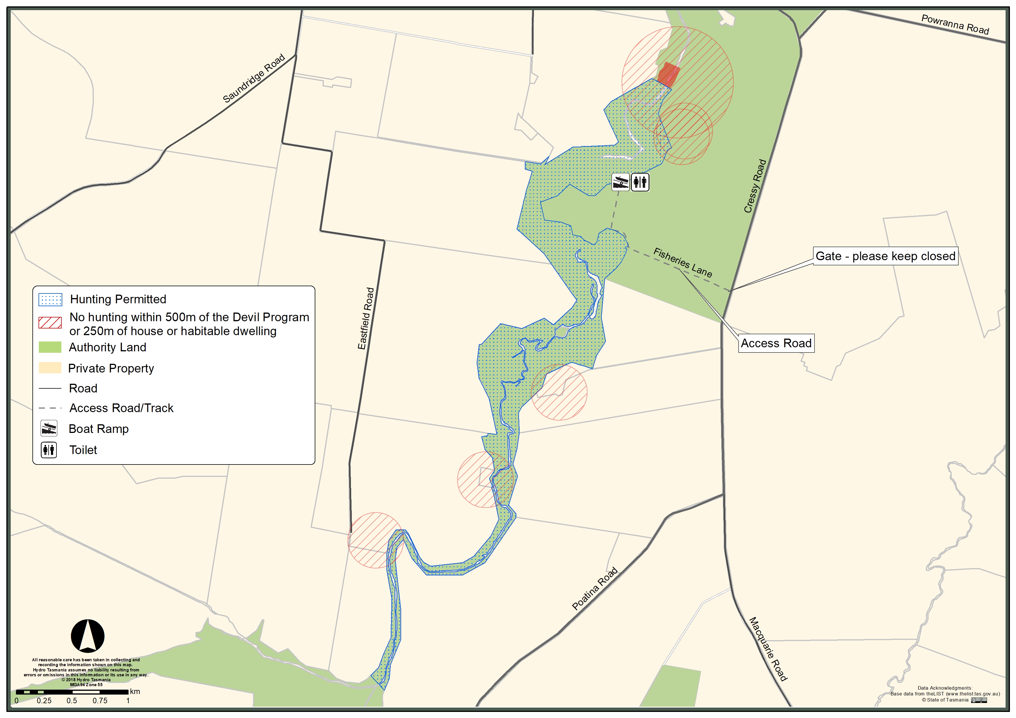 Hydro Tasmania may restrict firearm use at any time to protect public safety, our staff, infrastructure, or sensitive environmental areas.