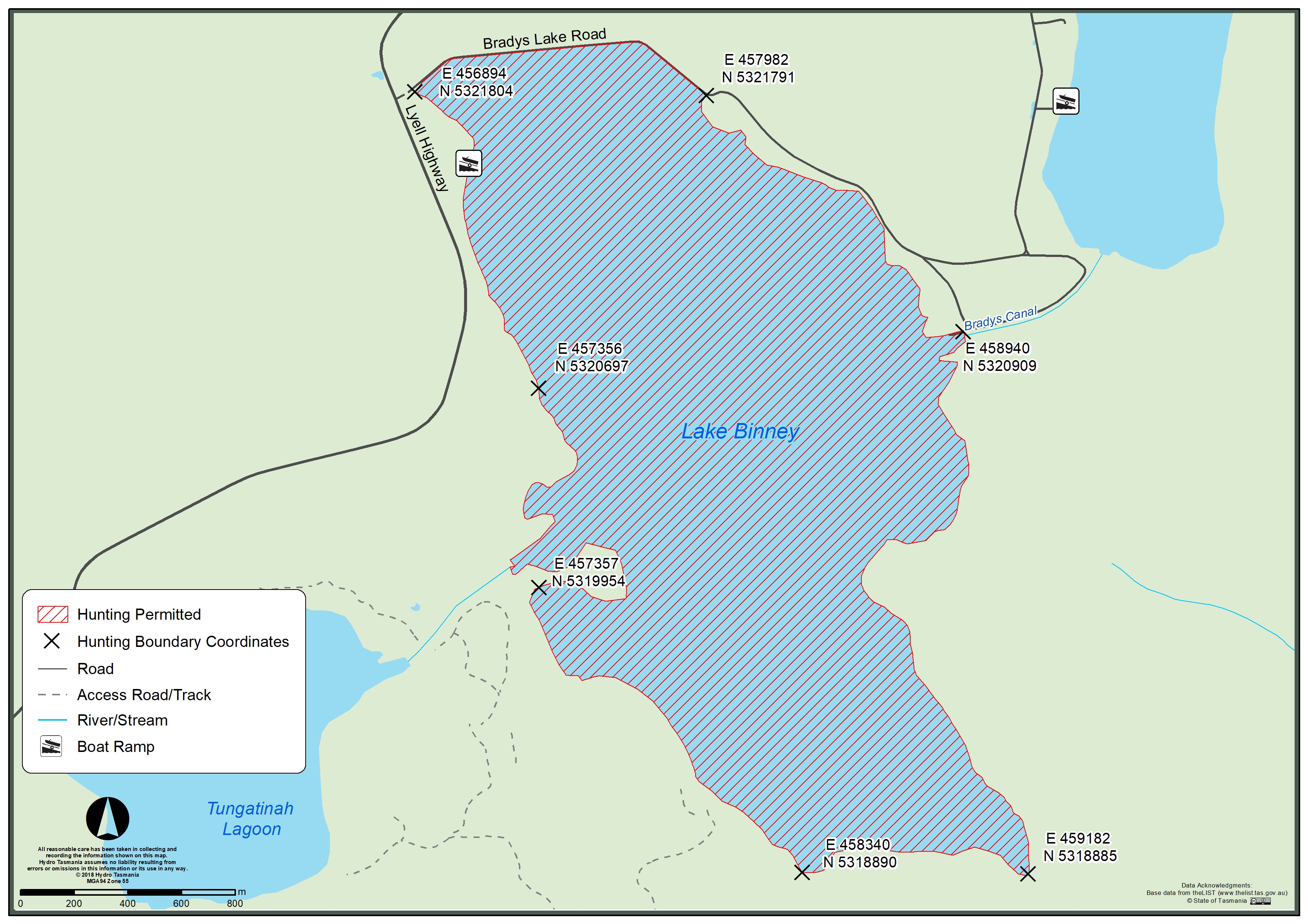 Hydro Tasmania does not issue hunting permits. The Department of Natural Resources and Environment Tasmania (NRE) governs wildlife management in Tasmania. All information and maps can be found on the NRE website.